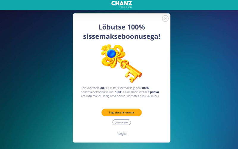 - Kasuta boonuseid arukalt: Võta kindlasti vastu Chanz EE tervitusboonused ja kampaaniad, kuid LOE alati läbi läbimängimisnõuded! Boonusraha annab sulle rohkem mänguaega, riskimata oma rahaga.